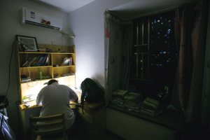 孙女士儿子回家后,还继续在台灯下复习功课。记者陈中秋摄