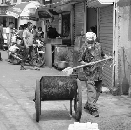 发现气体的环卫工姓杨,今年63岁,安徽人,在月落垟东路扫地已有9个年头。记者来到老杨家中时,他正躺在床上,两眼紧闭,不时说自己眼睛又酸又红,头也很晕。他的妻子介绍,昨天凌晨4时许,她和老杨做保洁,当老杨清扫到153号附近的垃圾桶时,突然眼睛一酸,什么都看不到了,蹲在地上站都站不起来了。但为了完成保洁任务,夫妻俩还是将垃圾桶内的垃圾搬运到附近的垃圾中转站,随后老杨就直接去医院挂点滴了。