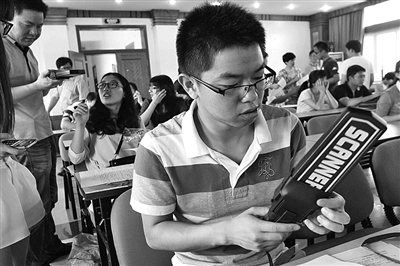 下午2点40分,21中行知楼4楼多功能厅里,监考老师们的“考前培训”刚刚开始。“第一次在考场使用金属探测仪”,“老师们的手机不能带入考务室”,“流动监考也不能带手机”……她边听边整理今年监考新变化。