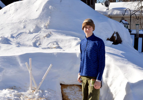 赫梅尔曾在夏天的时候,在自家后院搭建了一座木屋。而冬天,当气温已跌至约零下13摄氏度时,为了过冬,他又建造出一间雪屋,并住在里面。