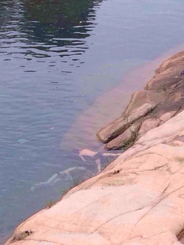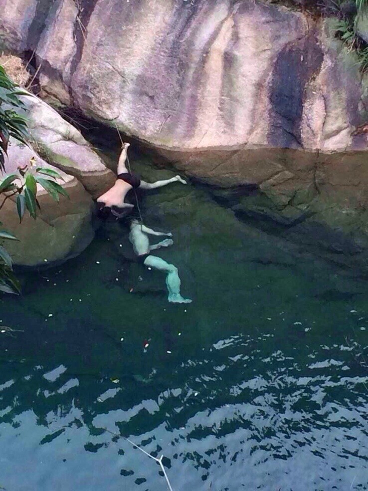 一名叫小龚(化名)的男子告诉记者,到了观光园,当地的杨梅种植户不允许摘杨梅,他们便沿路走到最高处的一个水潭边,坐下抽烟聊天。小龚回过头发现,小向(化名)不知何时已经把自己的衣服、裤子和鞋子都脱了堆在一边,只穿了件底裤站在水潭边。“我看见那里的水是深蓝色的,清不见底,就赶忙喊:‘那里水很深,你不要下去!’”小龚说。当时小向没回应,他又问小向懂不懂水性。话音刚落,小向已经“噗通”一声跳入水中。