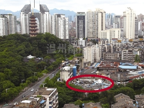昨天上午,鹿城区组织属地街道、城管与执法、消防等相关部门,依法强制拆除白马服装市场内近2000平方米的违法建筑(红圈处)。