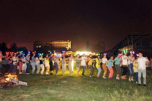 在欢快和谐的气氛中,男女嘉宾互相配合,展开了一场热火朝天的趣味竞赛。活动共分为果园寻宝、携手共进和篝火晚会等环节,大家在同心协力试图通过个个关卡任务的过程中,开心的笑容爬满了每一张年轻的容颜。伴随夜幕的降临,篝火晚会环节将活动推向了高潮。