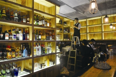 试营业期间的111Bar正对店铺部分细节进行微调。徐晓春摄