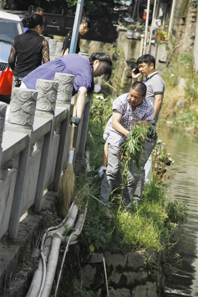 图为永中街道干部群众清理河道垃圾现场。陈出摄