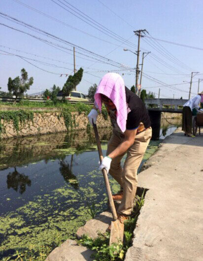 当天,在19名“河长”的带领下,大家干得热火朝天。有的放下扫把,用手清理杂草;有的奋力挥锹,将草丛中的垃圾一一清理出来,一锹一锹送进垃圾桶;有的登上保洁船,用网兜打捞清理河面漂浮垃圾;有的拿剪刀、钳子拆除沿线违章瓜棚。河道在大家的努力下,明显变干净了。