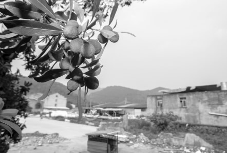 李先生家的杨梅树种在宋岙底村的一处山腰,其中七八棵与鞋革厂挨得很近,最近的一棵距离不到10米。用李先生的说法,这些杨梅树的树龄都在20年以上。摘下一颗杨梅,捏在手上,果实偏软。试了一下口感,不酸但也不甜,味道有点微咸。