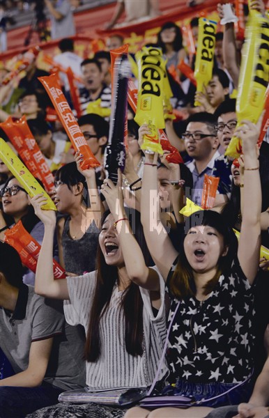 看台上,球迷们或是摇动着手中的啦啦棒,或是用啦啦棒敲击出震荡的声响,热闹的声势让场上球员踢的格外起劲。有球员就表示,昨晚的球场氛围特别好,啦啦棒制造出的加油声,让他们觉得仿佛到了真正的世界杯球场一样。朱振华表示:“我们平时做的啦啦棒多以外销为主,这次能够为温州本土的赛事的服务,我感到很高兴。”