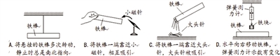 如题14,为了判断一根铁棒是否具有磁性,小明进行如下四个实验,根据实验现象不能确定该铁棒具有磁性的是