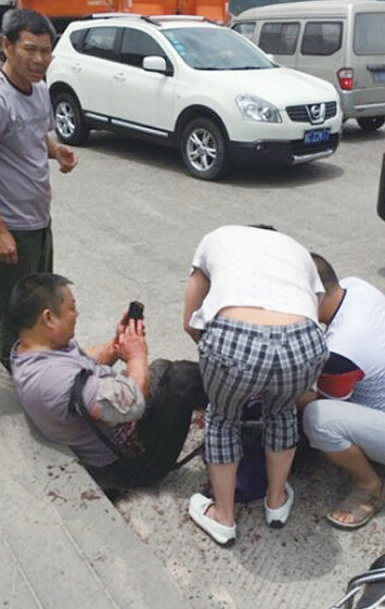 车祸现场路过医生出手救伤员 肇事司机蹲旁守候
