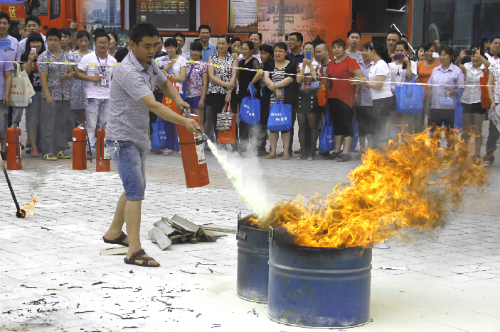 今年6月是第13个全国“安全生产月”,昨天上午,我区在文化用品市场举办了“安全生产月”宣传咨询日活动,围绕“强化红线意识,促进安全发展”这一主题,开展现场急救知识培训、消防通道体验、“看图识隐患”等系列活动,吸引了不少市民前来参加。图为市民在体验消防灭火。