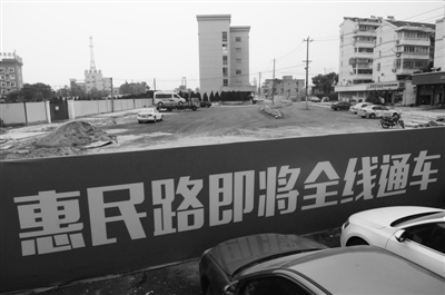 “这个围栏上的标语清楚地写着惠民路北段即将通车,应该不会有错吧?”昨天上午,在刘先生的指引下,记者来到江滨路惠民路北段路口,看到围在路口的红色围栏上确实写了几个大字:“惠民路即将全线通车”。