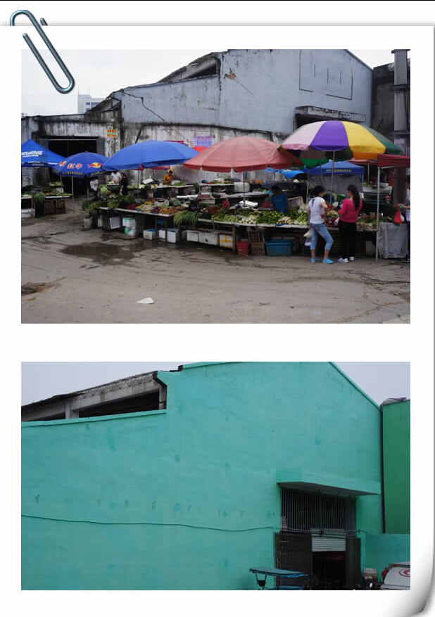 图为整改前和整改后的横街菜场外墙