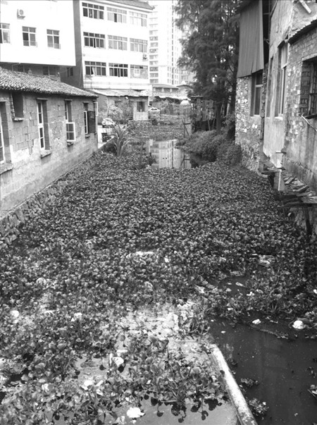 靠近江北大街的龙新河,两侧搭建着不少厂房,整条河面水葫芦疯长,蚊蝇飞舞,蛆虫遍布,简直是一条臭水沟。