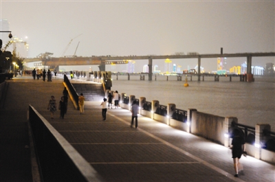 沿江这一带,经过这几年的整改和修缮,现在的确有那么点“上海外滩”的影子了。有了人气,自然生意也来了。拖家带口抱小孩的不用怕,这边小两口在江边兜兜风,那边有各种儿童游玩的设施来让你安置你家的宝贝;逛累了,江边有凉亭和靠椅,喝杯茶嗑点瓜子的休闲项目都一应俱全。当然,若是想锻炼身体的,像快走、夜跑、夜骑的,最好还是自觉往这条路通往会展中心的方向靠点,人不多,路也够宽,很适合运动。而想动感一点,加入广场舞的行列,倒是可以选择望江路码头和曼哈屯那一带。