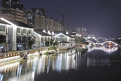 还在羡慕杭州的小伙伴可以坐拥西湖、就着风景大快朵颐吗?如今在美丽的南塘河畔,温州市民也能达成所愿。漫步“印象南塘”,楠溪江民居风格的建筑,黑白灰的主色调,颇有些旧时“南塘风情”的印迹。登上拱桥凭栏远眺,宽阔的河面与岸上的绿色交相辉映,宛如江南水乡的美丽画卷。每当夜幕降临,四周景致在灯光衬托下,更显出了一种温文婉约的美……