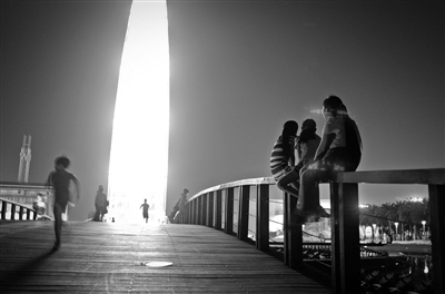 如果你是喜欢热闹喧嚣的那一款,那就去世纪广场吧。一入夜,这里就成了市民纳凉、休闲和锻炼的好场所。广场上人潮涌动,到处是夜锻炼的人,有大妈排着整齐队伍跳舞的,有老人组团耍剑、打太极的,有穿着运动衫在广场上绕圈跑的,也有小夫妻带着小孩出来玩的。还有广场玩轮滑、夜光放风筝,感兴趣的话,都可以试试。