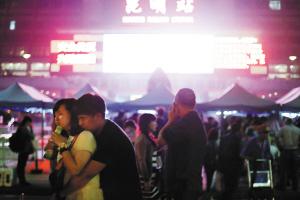 5月28日晚9点半,昆明火车站。这一天,距昆明“3·01”事件已过去近3个月。此时的站前路依旧热闹,卖炸洋芋的、卖卤面的摊点热气腾腾,拉客的电单车骑士们叼着烟,三三两两地坐在车上闲聊。