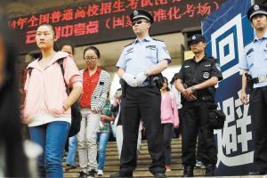 昆明警方在全城各处都加强了戒备。高考期间,佩枪的民警在云大附中考点执勤-马闪山