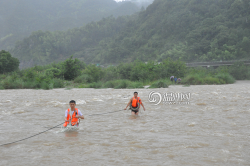 永嘉楠溪江暴雨引发山洪 3名菜农被困孤岛(图)