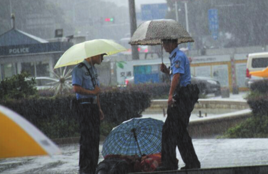 温州一醉汉暴雨中酣睡 民警撑伞守护(图)