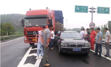 6月20日傍晚,在甬台温高速公路乐清收费站出城方向,一辆黑色宝马车因油料耗尽突然熄火,停在了匝道口处,致使匝道口处拥堵了近半个小时。