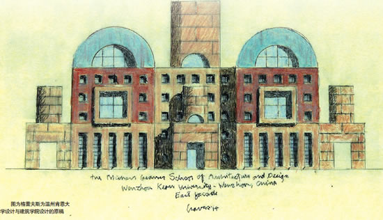 邀请格雷夫斯为温州肯恩大学设计大楼、安排课程,是由美国肯恩大学牵头达成。目前,温州肯恩大学已建成的建筑物,均由国内一个建筑设计团队承担设计,风格也与温州其他高校大不同。