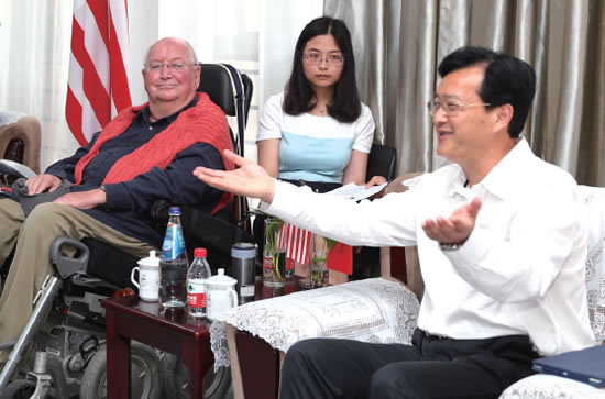 迈克尔·格雷夫斯与温州肯恩大学理事长林卫平(右)正在交谈。记者王诚/摄