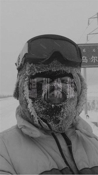 那天晚上,天空突下暴雪,温度已骤降至零下30多摄氏度。薛建东被困在通往漠河的路上,无法继续前进,随身带的食物也吃完了,路上也看不到车和人。他在雪地上推着自行车走了一个小时之后,感到虚脱,身体发凉。此时,他突然看到远处有一个低矮的工棚,里面有一道微弱的灯光。他立马上去敲门,一个中年男子开门迎接,为他生火取暖,还给他下了一锅饺子充饥。