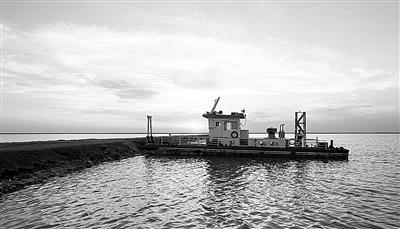 在罗布泊进行采盐作业的国投新疆罗布泊钾盐有限公司的采盐船。新华社记者江文耀摄