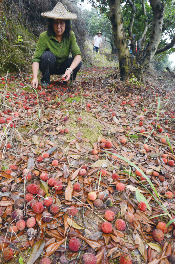 “第一天采摘,第二天就下起大暴雨一直到今天,除了第一天采摘卖了3000元,其他的均颗粒无收呀!”十八垅杨梅专业合作社基地负责人林成峰的姐姐林汝妹一边抹眼泪,一边带着记者去山上看果子。顺着泥泞的山路往上走,两边全是有着10年树龄的东魁杨梅树,树下的草丛中落满密密麻麻的果子,手一抓就是一大把。枝头上仍有不少果子,不过,有些都已长出白色霉点,伸手一碰就掉了下来。