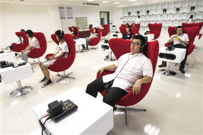昨天,在瓯海区新图书馆音乐图书馆内,市民戴着耳机免费享受高品质音乐。