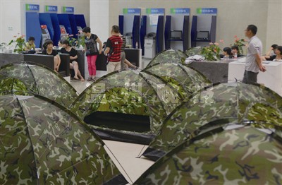 [现场直击] 34顶帐篷扎营银行营业大厅