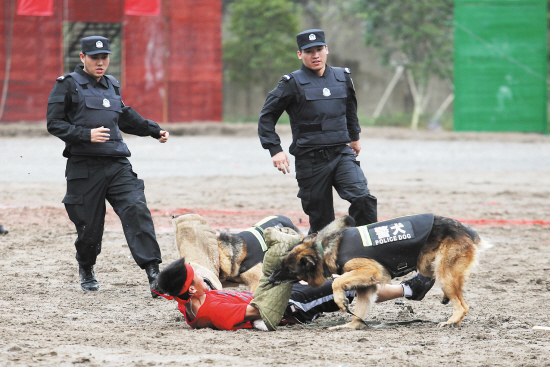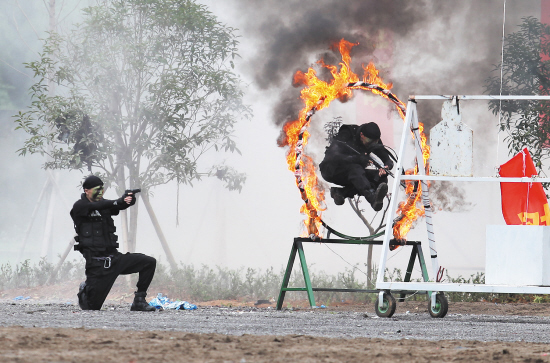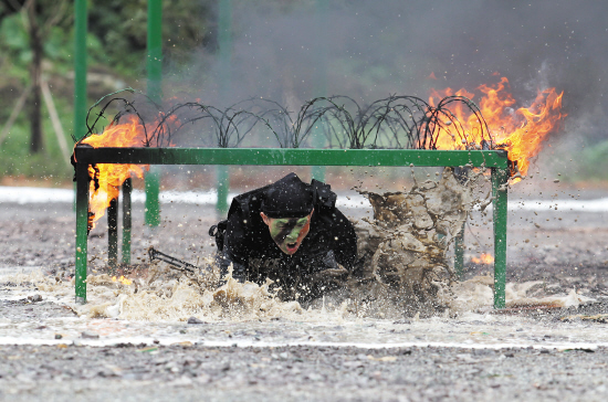 台州“野狼突击队”的出场,掀起了全场的高潮。这支突击队2010年8月由省公安厅亲自命名。5名特警队员表演了徒手攀爬4层高楼、高空索降、武装越障、协同爬4.2米高墙等10多项内容,所有动作一气呵成,展现了特警队员超常的体能和战斗力。