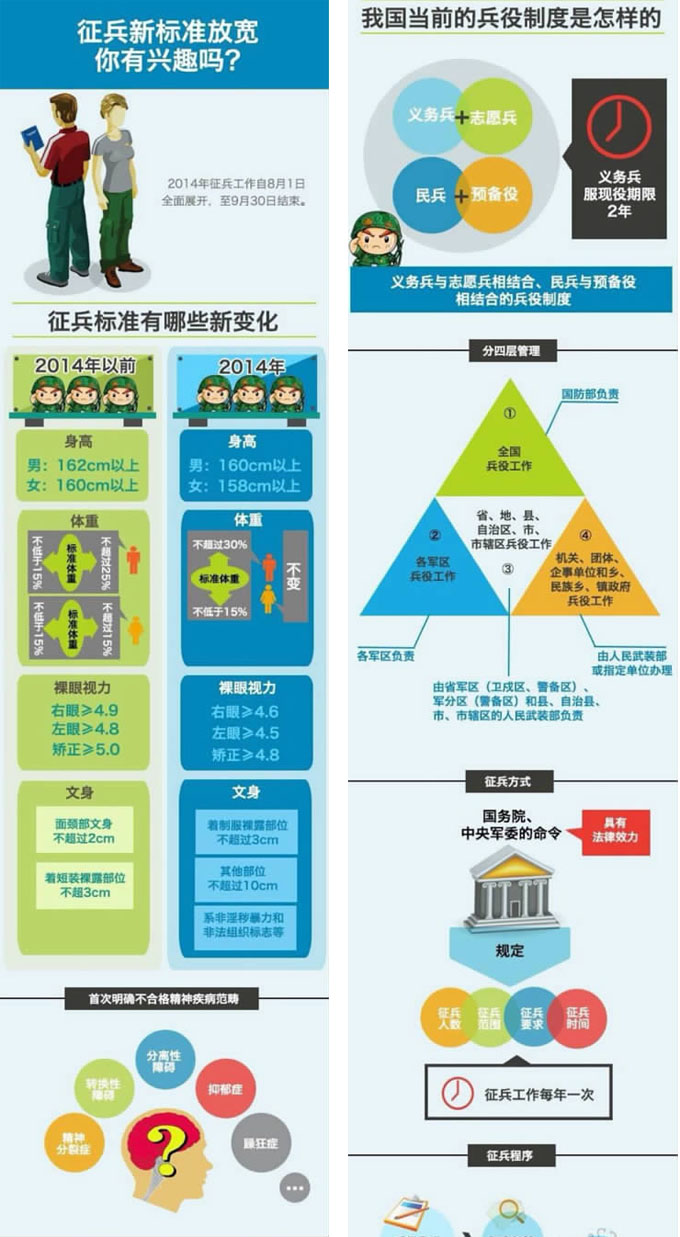 4月10日至8月5日网上报名(报名网址:http://www.gfbzb.gov.cn),8月6日起体检政审,9月1日批准入伍,9月30日结束。大学生征集时间适当提前,在7月31日前完成报名应征大学生的体检、政审和预定兵工作。在征兵结束前,将继续做好大学生征集工作。