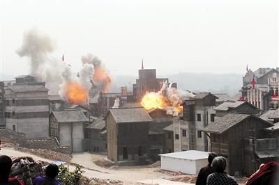 电影《一九四二》还原重庆大轰炸场景。(资料图片)(记者许恢毅摄)