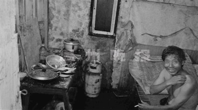 在这间群租房的一楼,记者看到左右各有两条非常狭长的通道,约50公分宽,仅够一个人勉强通行。这两条通道的两侧,有三排用三合板隔起来的一个个小房间。记者打开其中几个房间看了下,房间面积约6平方米,没有窗户。里面的电线显得比较凌乱,没有套上PVC管。有的房间里还放着煤气罐和煤气灶。在一楼的楼梯口,有两个公用的卫生间,里面飘出一股臭味。出租房里非常阴暗和潮湿,记者在里面待上几分钟后,就感到压抑,而且头晕。