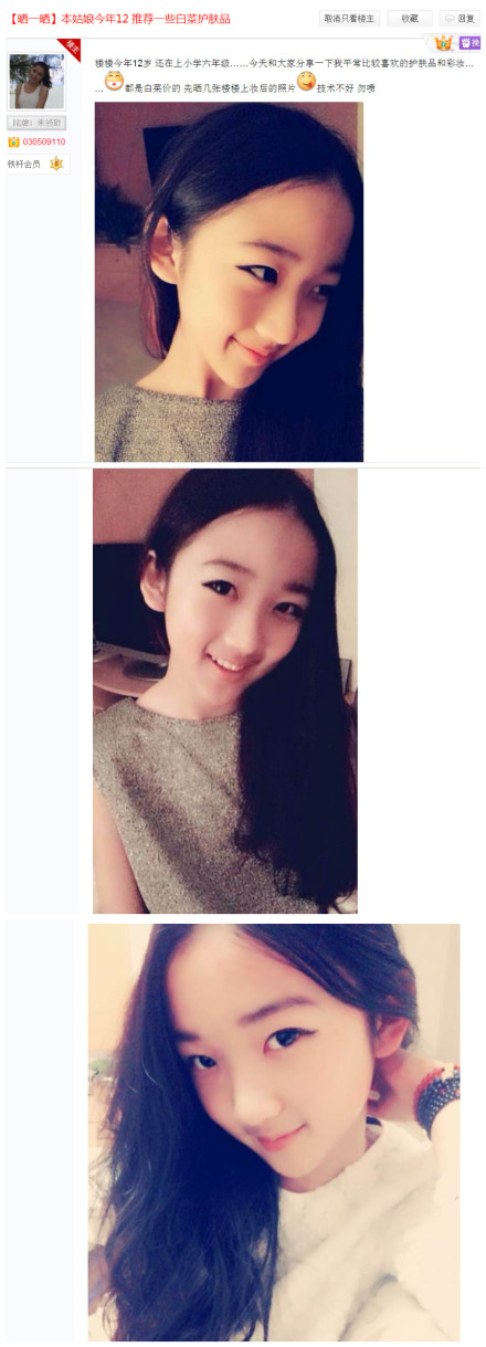 @ BonneChancePapiC:其实家境好当然可以好好的打扮打扮,只是12岁真的…年纪太小了,皮肤很娇嫩,护肤品化妆品什么的毕竟有很多化学物质,对皮肤不好的