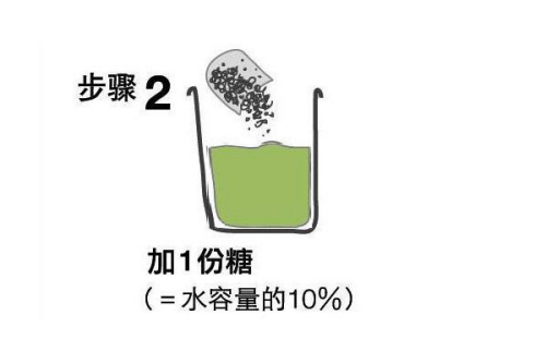 2.水十分之一的量就是所需黑糖或黄砂糖的量(如100斤的塑胶桶装入60斤的水,然后将6斤红糖倒入水中,轻轻搅匀,使融化)。