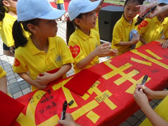 此次宣传活动活动分为三个阶段,分别是为小朋友颁发“小小创卫宣传员”的聘书,“小手牵大手,创卫伴我行”主题宣传横幅签字活动以及创建国家卫生城市有奖竞猜。活动最后还为小朋友分发了垃圾袋,鼓励他们捡起身边的垃圾。本次活动旨在以学生的行为带动家长,将创建卫生城市逐步的概念延伸到社区、家庭,影响和带动家长、群众积极参与到创建卫生城市活动中来。