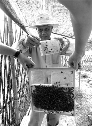 本报讯(记者沙默报道组蔡运进实习生章政)蜂蜜是大家喜爱的食品,但购买蜂蜜常有人担心是否掺入其他添加物作假。在苍南经营养蜂场的许明掰,近日研发出一种新的养蜂产蜜模式——让蜜蜂住上“别墅”存余粮,蜂蜜从采集开始就存入特制的容器,无法掺假。