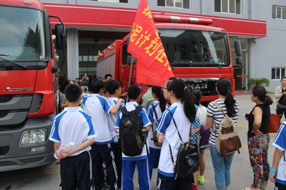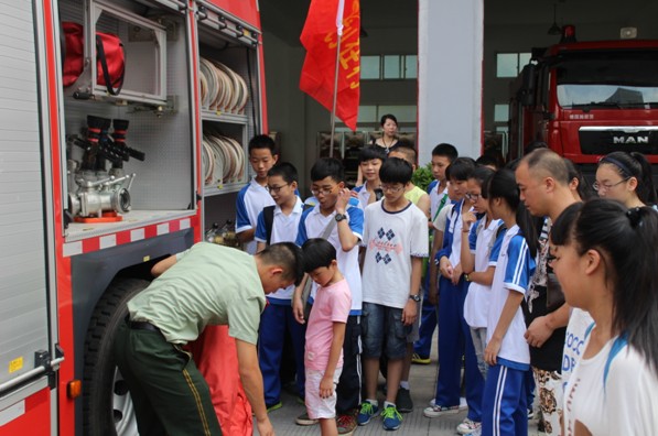 当天,消防讲解员首先向孩子们介绍了几款装备精良的消防车,如德国施密茨泡沫消防车、长沙中联举高喷射消防车,尤其是那辆被称为“生命云梯”的消防车,赢得孩子们节节赞叹。然后,消防讲解员还让孩子们试穿了厚重的消防衣,带领他们参观了消防员寝室宿舍与各类活动室。整整整齐齐的“豆腐块”让孩子们惊叹不已,也有热衷于各式各样的体育器材的孩子们,不时秀上一把。最后,消防讲解员向大家发放了消防安全宣传册,组织大家认真观看了消防宣传片,让孩子们了解了一些基本的消防安全知识与逃生技能。