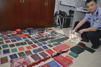 在清点过程中,民警发现伪造、变造的印章,上至驻外大使馆等中央部门、教育厅等厅级机关下至街道居委会,横跨行政机关、事业单位和个体经营,应有尽有;伪造的证件,从行政机关出具的土地证、产权证、户口本、出生证、结婚证、营业执照,到大中小各类学府毕业证书、各类职业资格证书,一应俱全。