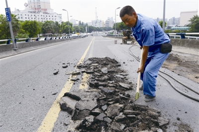 至于为何要施工,据施工单位负责人称,是因为他们发现三维桥北向南有四块桥板出现断裂,存在安全隐患。接下来,他们会将断裂的桥板挖出进行更换,之后再浇筑水泥,“加上养护期时间,大约需要一个月”。