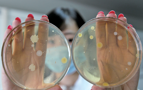 据工作人员介绍,每个样本之所以要分成两份,为的是在得出菌落数后进行平均,减少实验的误差,让实验结果更加准确。