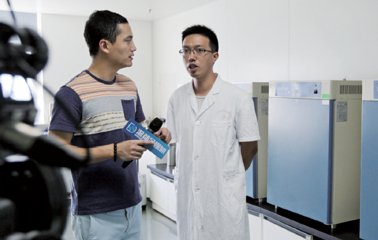 昨天,温州市疾病预防控制中心卫生微生物实验室,温都全媒体记者正在采访实验的检验师。记者郑之越/摄