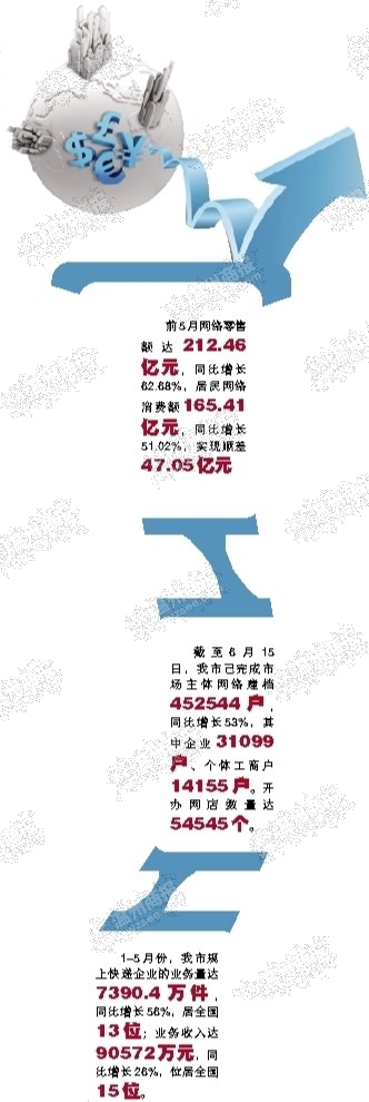 温州前5个月网络零售额212.46亿 同比增长62.68%