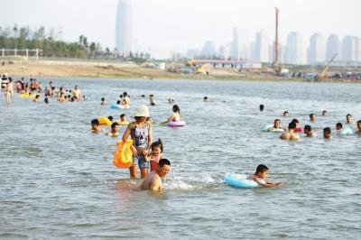 酷热难耐,许多人到郑州龙湖里游泳避暑。首席记者陈晓东摄影