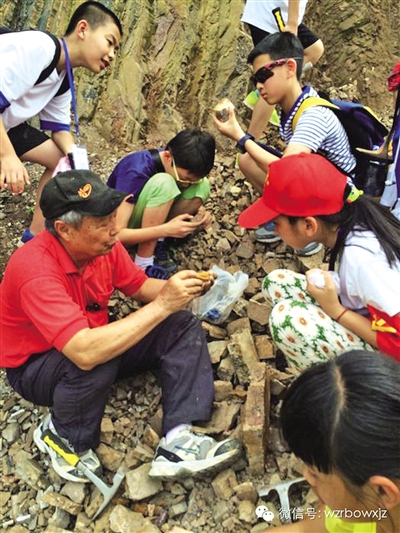 “咚咚咚……”这是大家敲击石头的声音,在两位中科院专家的带领下我们来到青龙山。顶着烈日,我蹲在一大堆石头中间:“到底哪一块才是呢?”我自言自语道。敲开一块,不是;再来一块,也不是。“哎——”我叹了一口气,又抹了一把汗。化石,快显灵吧。我在心里默默祈祷,眼看好朋友都已经小有成就了,我有点沮丧。这块有吗?我拿起一块感觉很像化石的石头,飞奔到老师面前,“恩,这块是的”!太好了,我终于挖到化石了,高兴得手舞足蹈。李逸凡(敖江实验小学6年级)