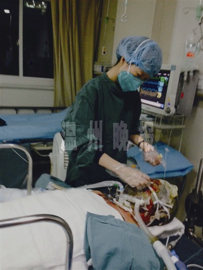 而记者从温州医科大学附一医了解到,此次支援省城,医院对此非常重视,特意挑选出了最好的烧伤科护理人员之一——缪爱梅作为参与救护该案伤员的唯一一名温州地区的医护人员,其代表的不仅仅是附一医,更是全温州医护人员的一种形象。